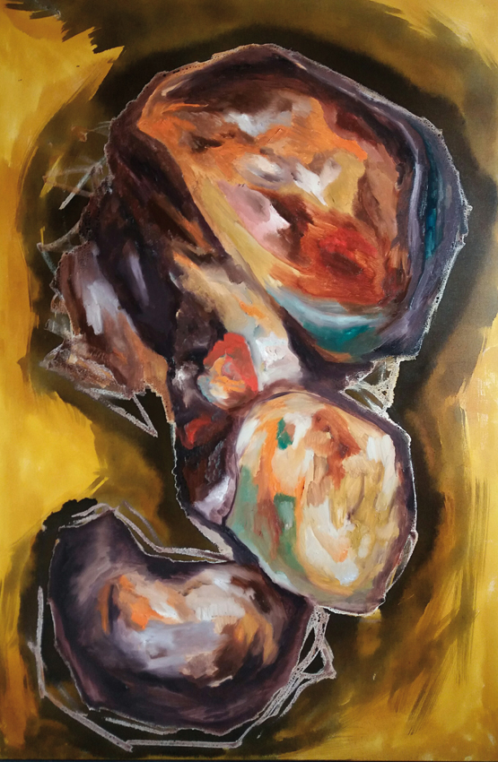 oil/ink/canvas, 100x70 cm